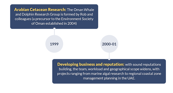Rob is an original founder of Five Oceans and is based at the Muscat office in Oman. Rob leads our conservation programmes and has over 20 years experience in environmental consultancy and marine conservation initiatives, specializing in marine wildlife research and marine and coastal Protected Areas management planning. Rob has a wealth of experience in the Middle East and is recognized for his contribution towards marine conservation and research on whales, dolphins and sea turtles in the region. He has also worked and travelled extensively in other parts of the world, both spreading and building his experience in the conservation of marine and coastal environments in an increasingly challenging global scene.